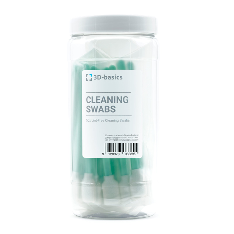 Deze staafjes zijn perfect voor het schoonmaken van lastig te bereiken plekken in een 3D printer. In tegenstelling tot wattestaafjes, laten deze staafjes geen vezels achter. Dit is belangrijk omdat losse vezels diffractie van uv/laserlicht kunnen veroorzaken in SLA en SLS 3D printers.